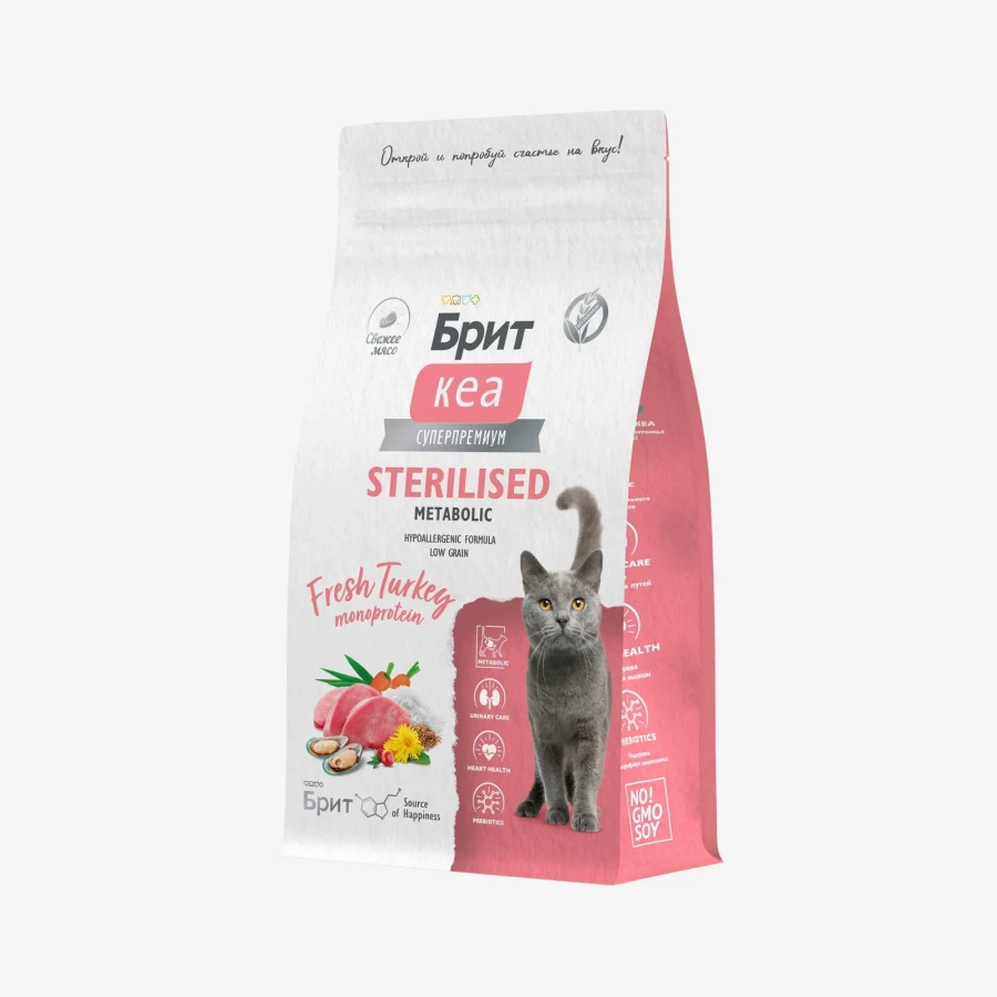 Высокое содержание индейки (49,5%), пониженное содержание жира (11%) и повышенное клетчатки (3,7%) для контроля веса и метаболизма, свежее мясо в составе, новозеландская мидия и хондропротекторы для суставов, клюква для профилактики МКБ, одуванчик для поддержки МВС, L-триптофан (из индейки) для спокойствия, пребиотики (FOS, MOS) для пищеварения