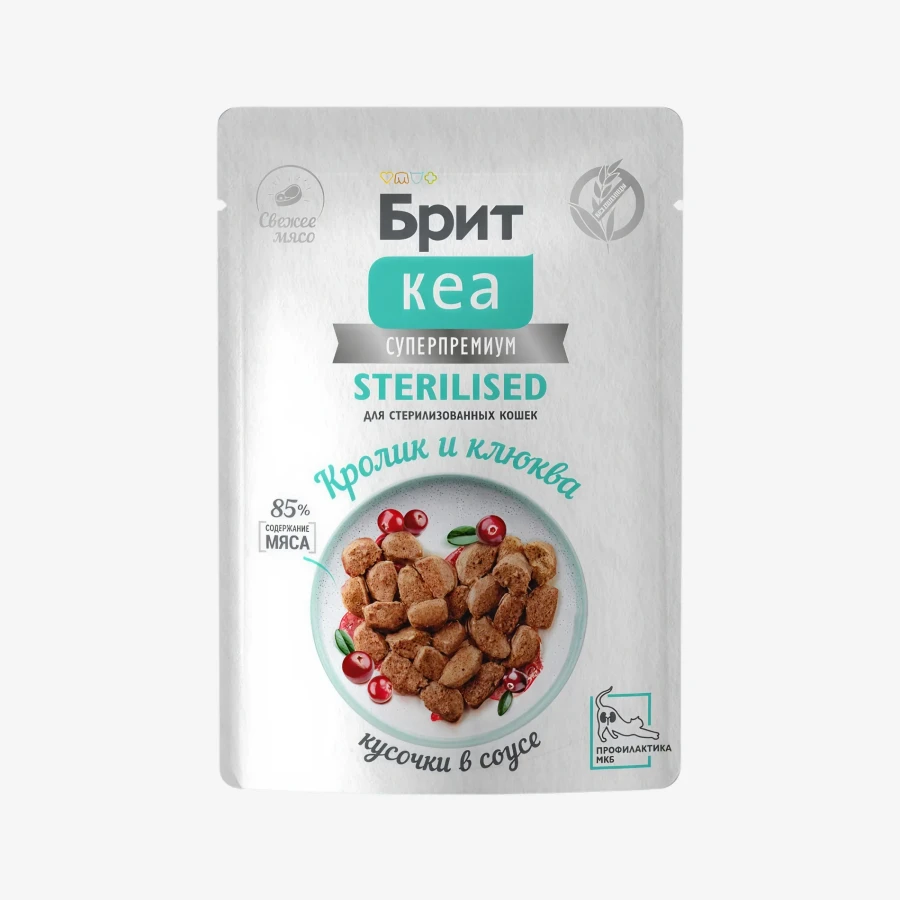 Брит Кеа Sterilised Пауч для стерилизованных кошек (Кролик и клюква), 85 г