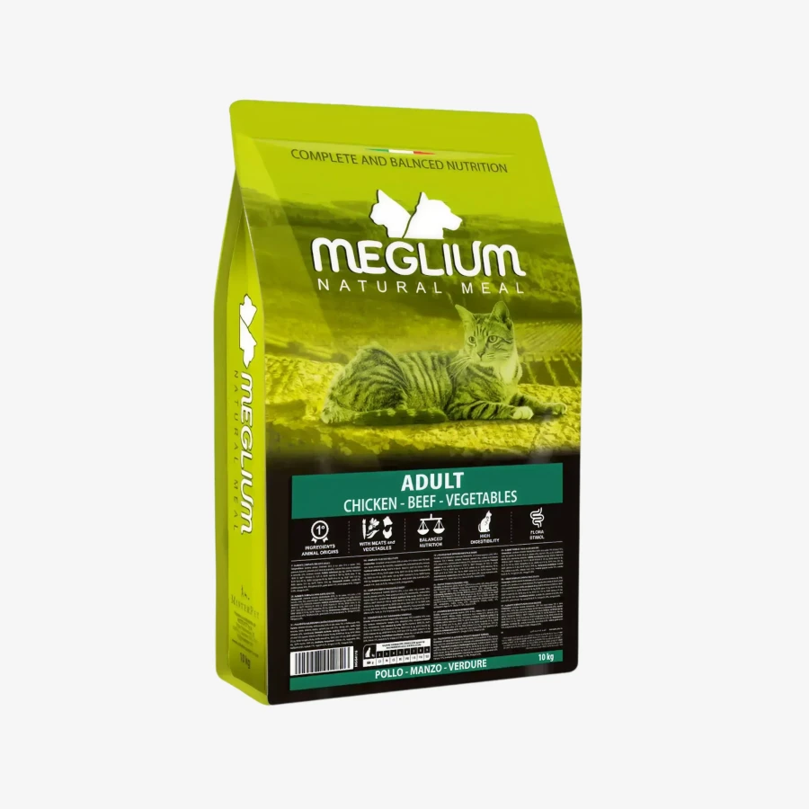 Корм Meglium Cat Adult (Курица, говядина, овощи) для кошек, 10 кг